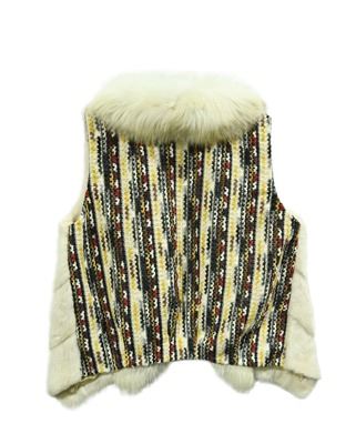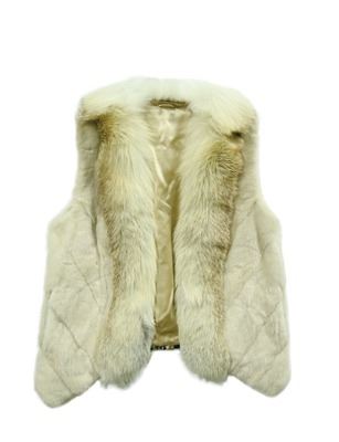 •This 22” pearl mink vest with fox collar and fronts has a fabric back.