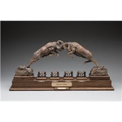 • This unique, eye-catching bronze sculpture of colliding rams and four sheep skulls representing th... Show more..