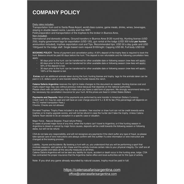 This is a five-day 2 x 1 hunt for THREE hunters in northern Patagonia. The hunt includes trophy fees... Show more..